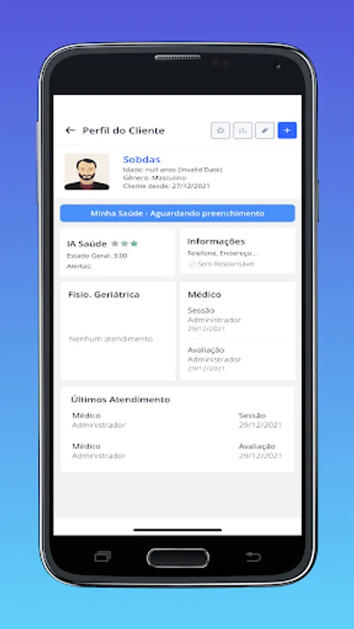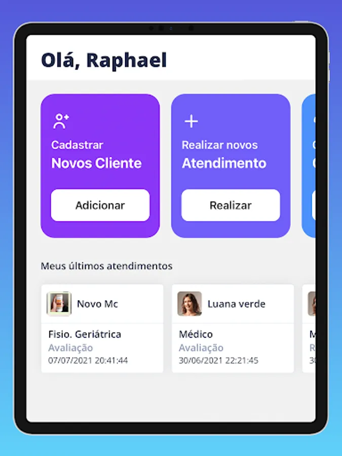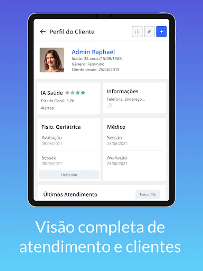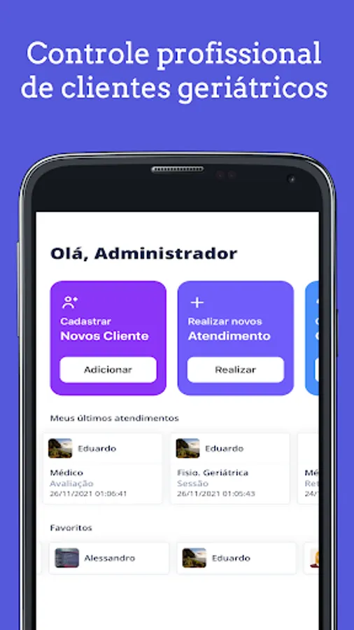 App for managing older clients, geriatric clinics and physiotherapy professionals, as well as doctors and clients in need of follow-up.
