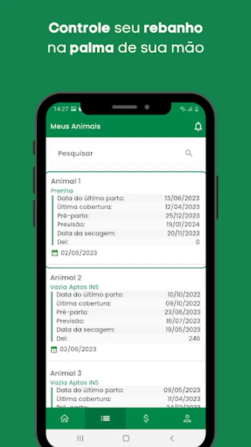 We provide a mobile application to assist in the management of dairy herds. The tool makes it possible to monitor the reproductive stages of cows and management, with the difference that contact and exchange of information is directly with the veterinarian responsible for the assisted property.