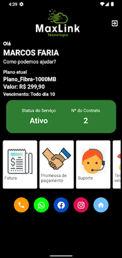 In the MaxLink Tecnologia Subscriber Center app you can: