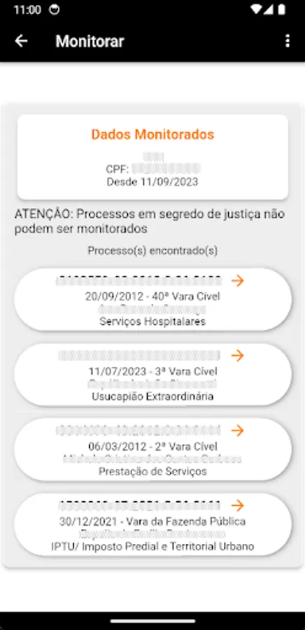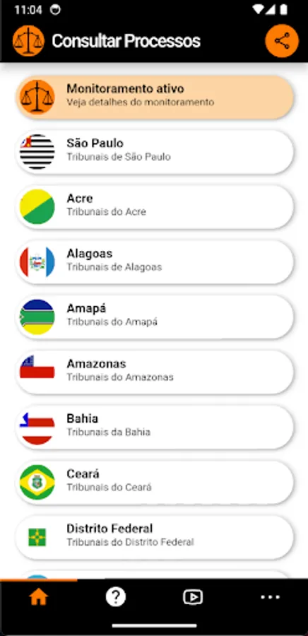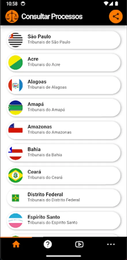 We put together in our application, a SET OF LINKS TO THE SITES OF THE COURTS that will take you quickly and safely (which does not always happen in an internet search) to what you really want: make your query in the desired process. IN THE LINKS AVAILABLE FOR THE COURTS, you can search by CPF, name, case number, CNPJ or company name in all forums in Brazil as many times as you want.