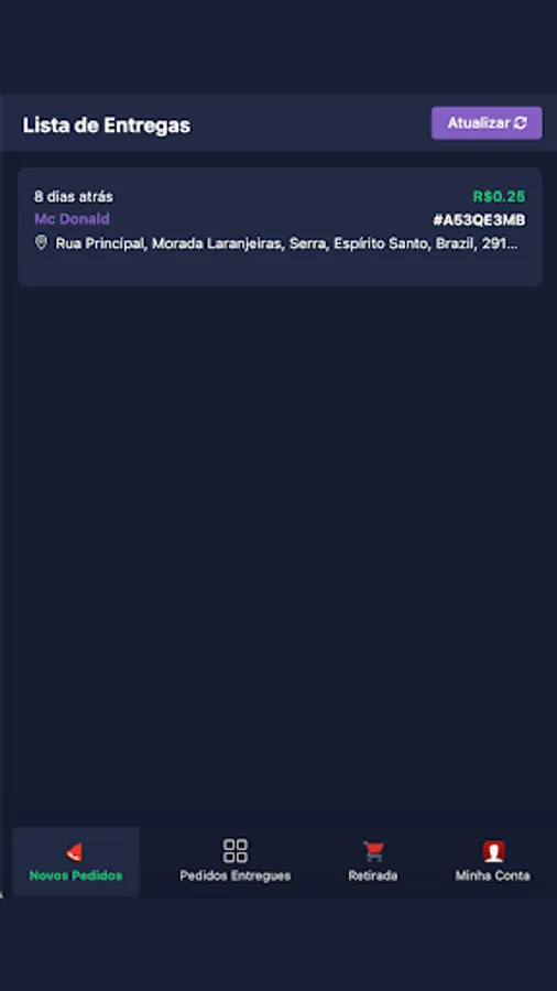 Application Created for the delivery of the App Already Arrived to manage your runs and orders.