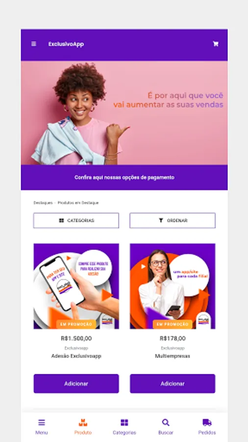 Your store: With the ExclusivoApp app and website, your store has your face, name, colors, logo, font and images with your company's visual identity.