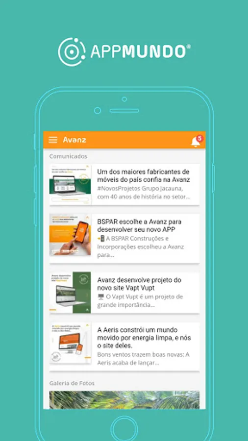 AppMundo is an app to help companies, associations, public or private organizations of any nature strive for better performance, organizational efficiency and institutional communication through a host of communication and productivity features. It has administrative backend, reports and is compatible with major mobile platforms, with the possibility of customization to suit different needs.