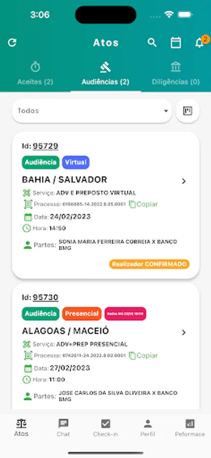 With the application, it is possible to manage directly and in real time the acts to be performed, their relevant information, appointment schedule, geographic location, attach documents, photos and return information on the appointments made.