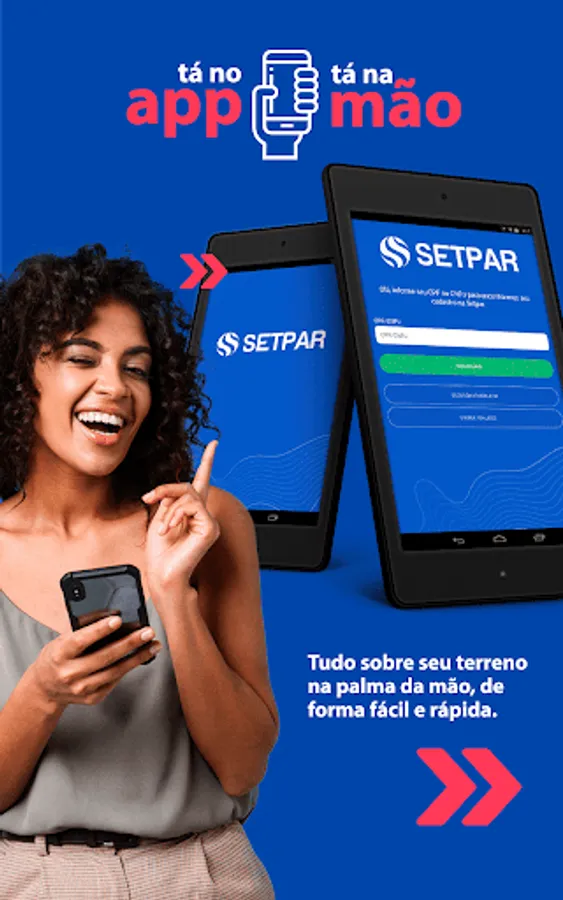 Taking care of your land has never been easier with the new App Setpar. Created and developed to assist, inform and assist the Setpar client, the application offers all the functionalities related to its land. With the app on your phone, you'll have even more autonomy in the palm of your hand.