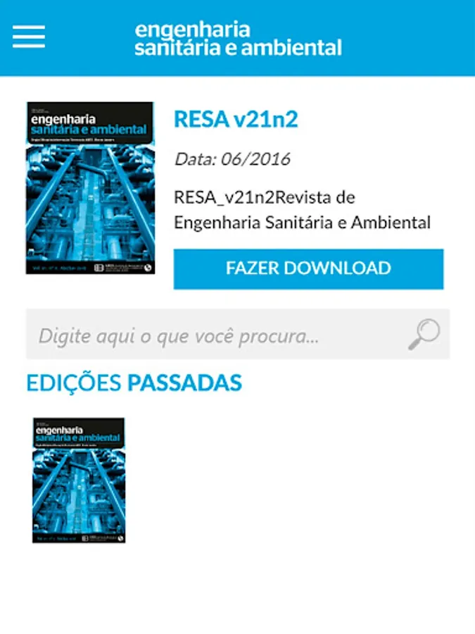 The Journal Sanitary and Environmental Engineering aims to publish original scientific and technical contributions in the areas of sanitation and environment, and their interfaces.