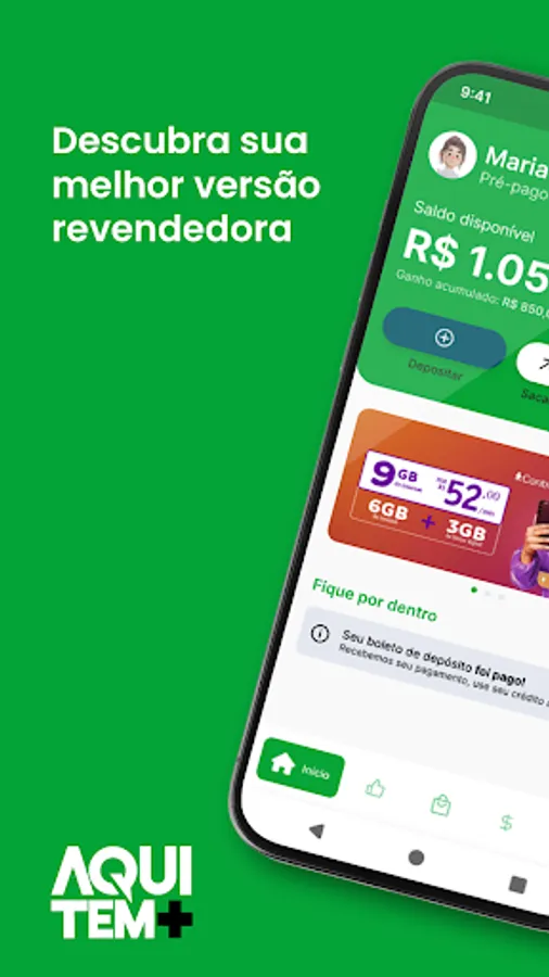 With Aqui Tem Mais, in just a few steps you can resell recharges from operators such as Claro, Vivo and TIM