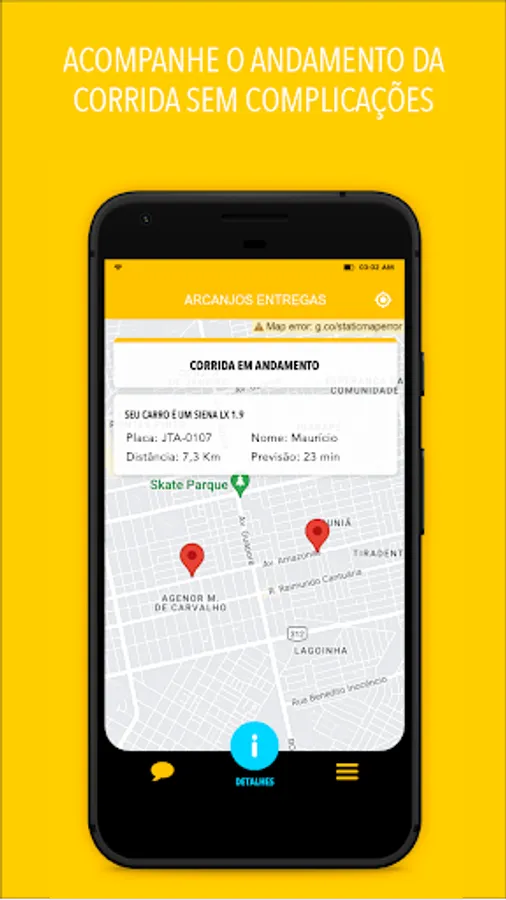 Our application allows you to call one of our motorcycle taxis and follow the vehicle's movement on the map, being notified when it is at your door.