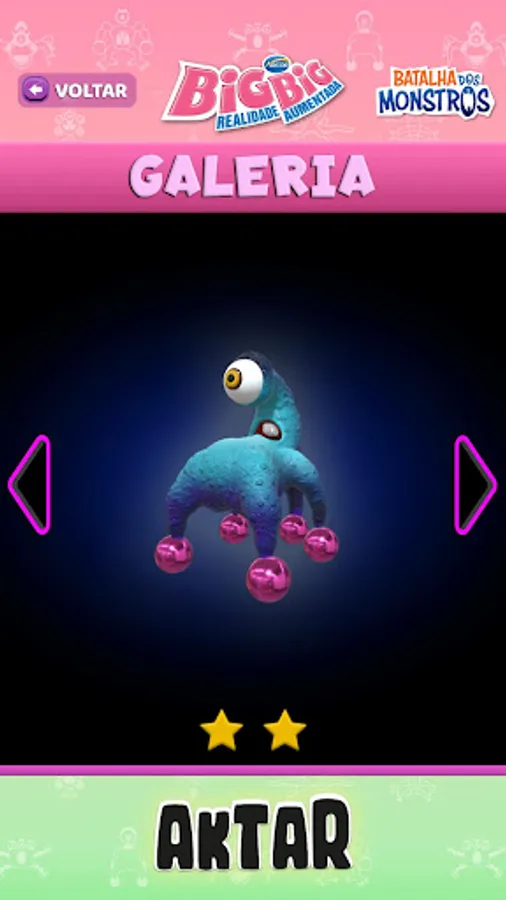 Big Big Augmented Reality is an official Arcor do Brasil app that takes you to another universe, the Super Big Galaxy. Where, with the stickers purchased from Big Big Gums and with this application, you can point them to your cell phone and come across different monsters that will be able to battle through augmented reality technology. Each figurine represents a monster. There are 8 different monsters!