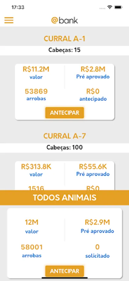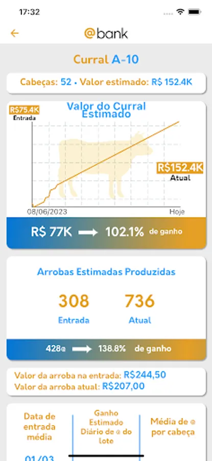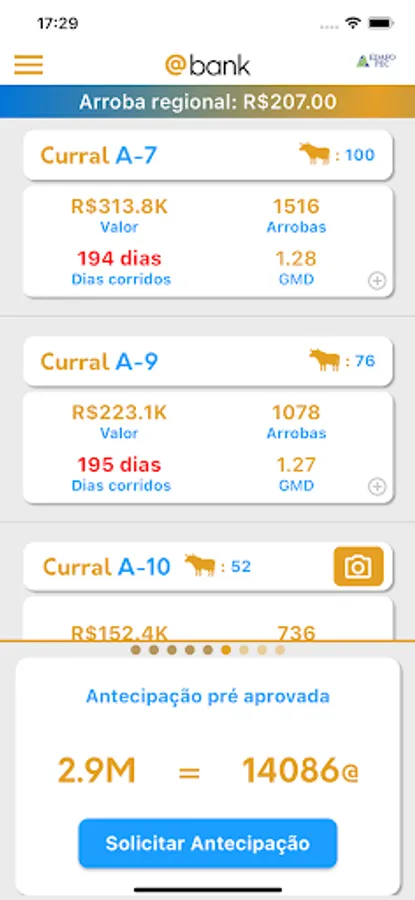 Arrobank is the ideal digital bank for ranchers who want to maximize their profits. With Arrobank, you can display your animals by pen and in more than one confinement, in addition to viewing each one individually. This allows you to have precise and detailed control of your property. In addition, Arrobank allows you to anticipate the value of your animals before slaughter, which allows you to take advantage of new business opportunities with your cattle. Try Arrobank now and see how it can help you maximize your profits and make your life easier as a rancher.