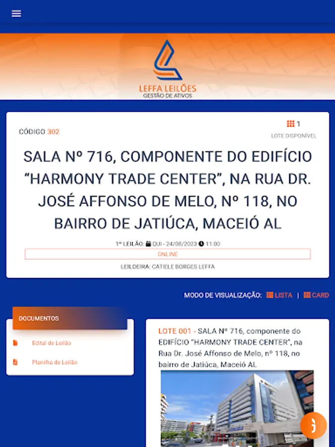 Now, through our App, you can access the auction schedule, the listings of lots with photos and descriptions and participate by bidding. Everything in the palm of your hand, through your cell phone