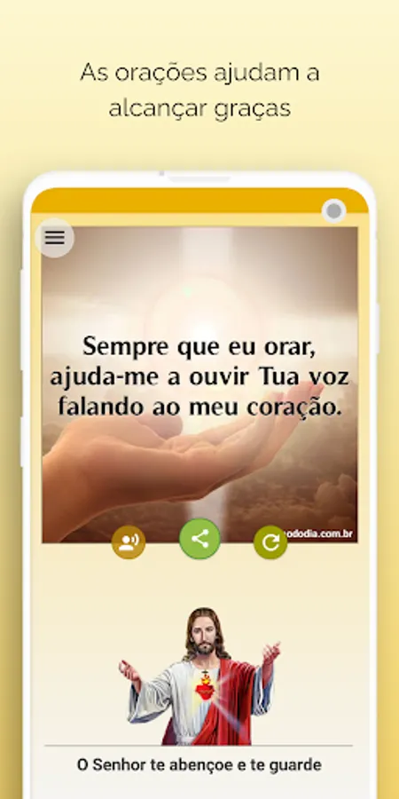 At all times of the day you can check a prayer to bless your life (in the new version of the application the prayers are updated every 10 minutes).