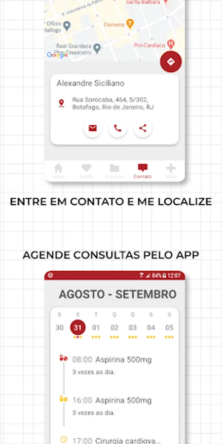 Now you can schedule appointments, have prescriptions, exams and surgical reports always available on your phone and receive medication reminders and consultations through our app.