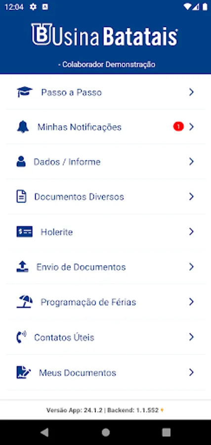 RH Batatais allows you to consult your pay slips, timesheets, scheduled and upcoming vacations, notices, documents. It also allows you to send documents to the configured sectors.