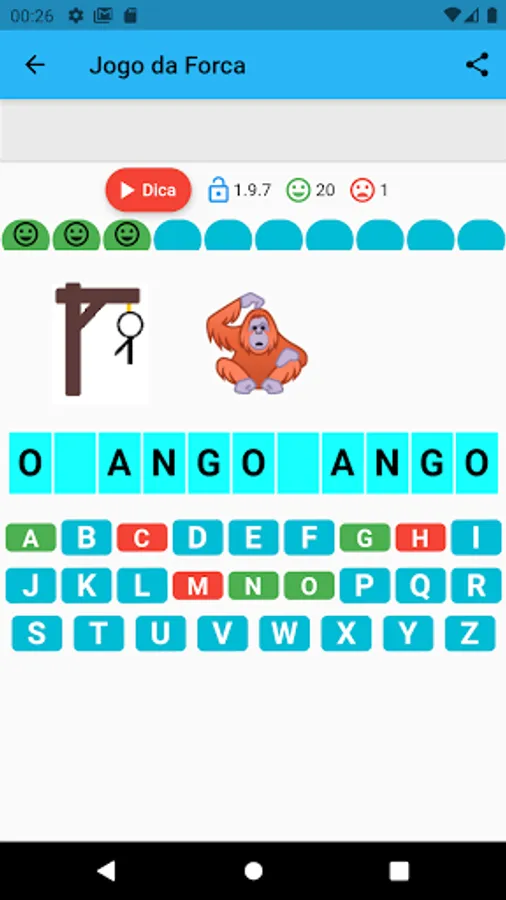 In the Hangman game, try to guess which word is hidden by clicking on the letters.