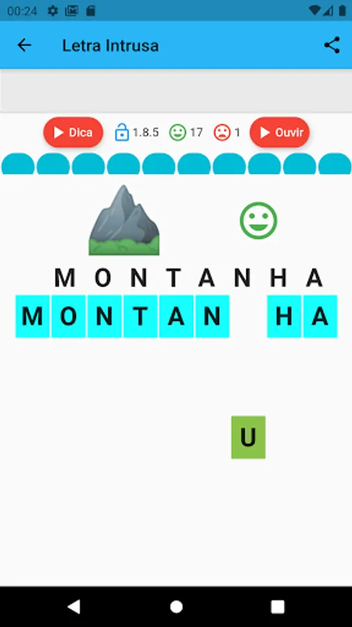 In the Letter Intrusa click on the letter that is not part of the writing of the word.