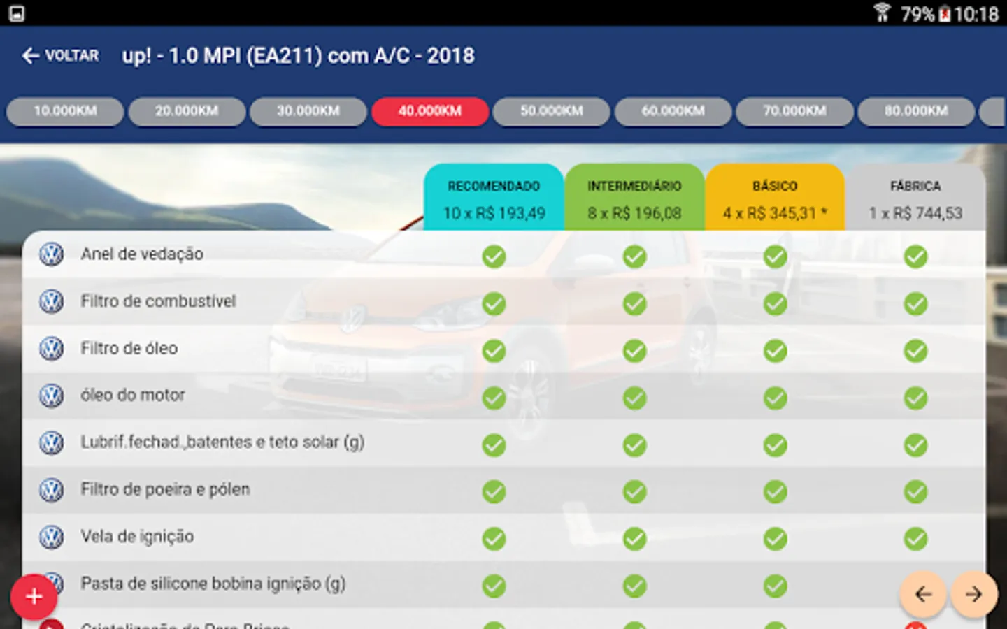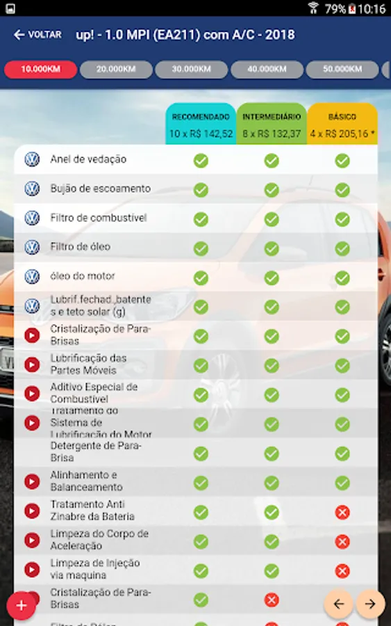 We added the recommended revision of the manual, three or four services in the basic revision, four to six services in the recommended revision and six to eight services in the complete revision, allowing increase of sales of products and labor.