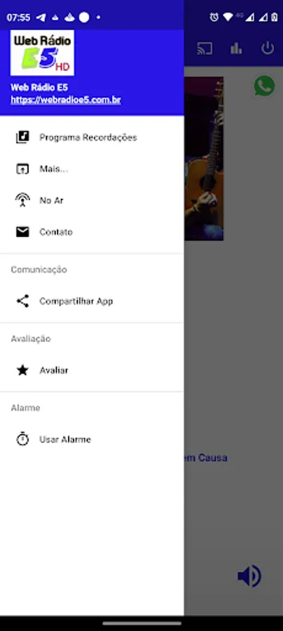Since July 2017, it broadcasts 24 hours through AudioBras streaming, the website is https://webradioe5.com.br. It has pages on the main social networks.