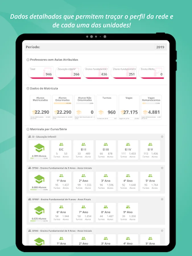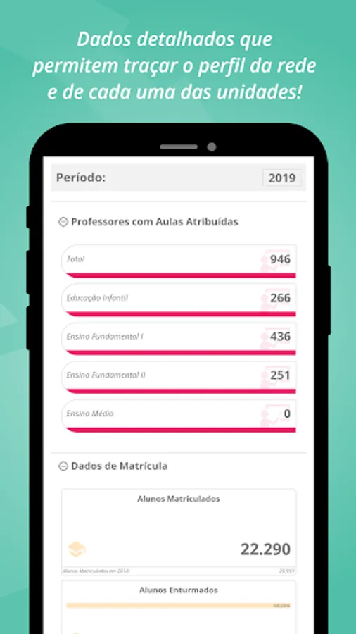 The app has an intuitive interface and is very easy to use. Through it, the user accesses all information pertaining to his education network and school unit as infrastructure; enrollment control; food; classes, students and employees of the teaching network and school units; enjoy exclusive content for managers; receives communications; check out news from your school and much more!