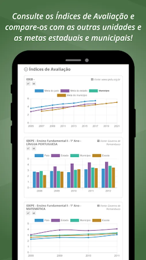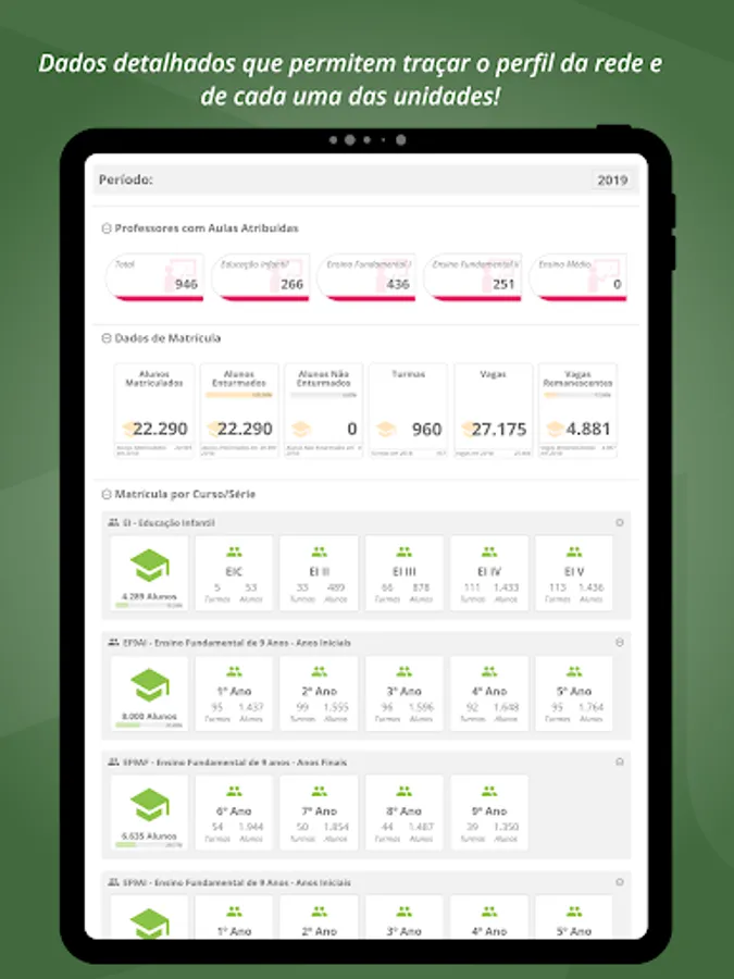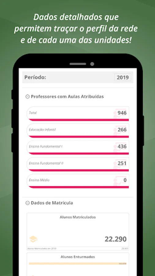 The app has an intuitive interface and is very easy to use. Through it, the user accesses all information pertaining to his education network and school unit as infrastructure; enrollment control; food; classes, students and employees of the teaching network and school units; enjoy exclusive content for managers; receives communications; check out news from your school and much more!