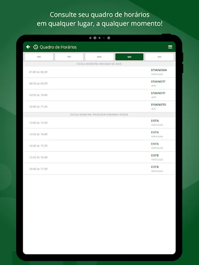 The application works online and has an intuitive interface, in addition to being very easy to use. Through it, the user accesses information pertaining to their network, school unit and classes, enjoys exclusive content for educators, receives and sends communications, checks news and events from their school, timetable, school calendar, class bank and projects, articles and much more!