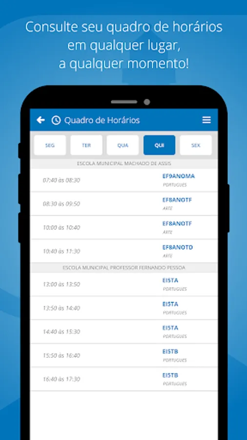 The application works online and has an intuitive interface, in addition to being very easy to use. Through it, the user accesses information pertaining to their network, school unit and classes, enjoys exclusive content for educators, receives and sends communications, checks news and events from their school, timetable, school calendar, class bank and projects, articles and much more!