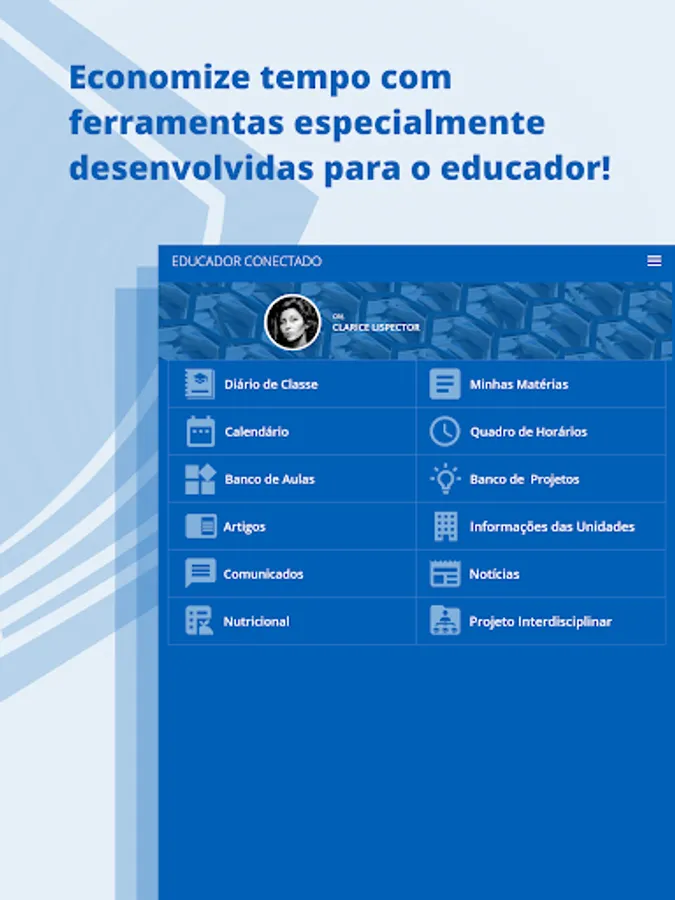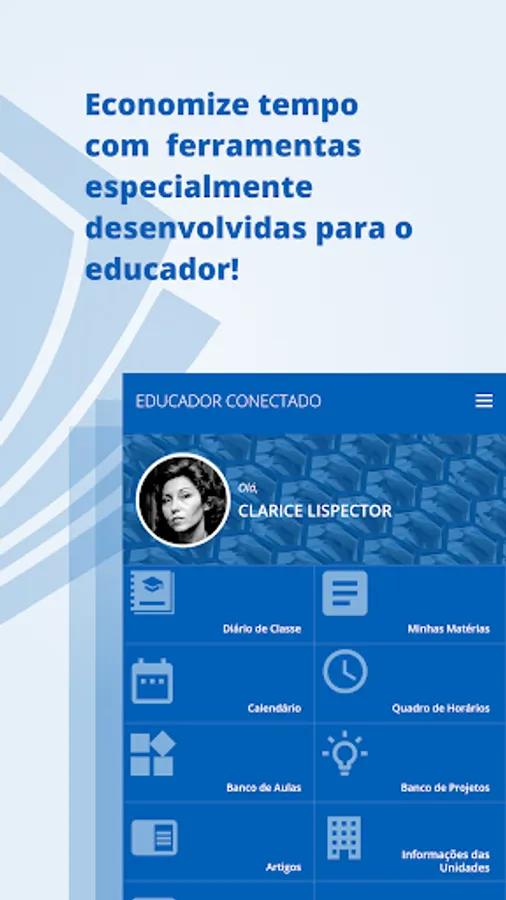The application works online and has an intuitive interface, in addition to being very easy to use. Through it, the user accesses information pertaining to his network, school unit and classes, enjoys exclusive content for educators, receives and sends communications, checks news and events at his school, timetable, school calendar, bank of classes and projects, articles and much more!