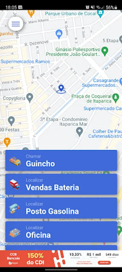 In it you can select by calling tow truck, search for gas stations, tire repairman, locksmith, among several other options. Those closest to you will appear and then you can choose the one you like the most.