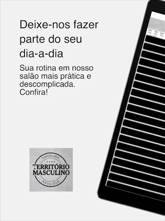 Schedule your service in TMapp - Male Barbershop Territory in a simple and intuitive way, with just a few clicks.