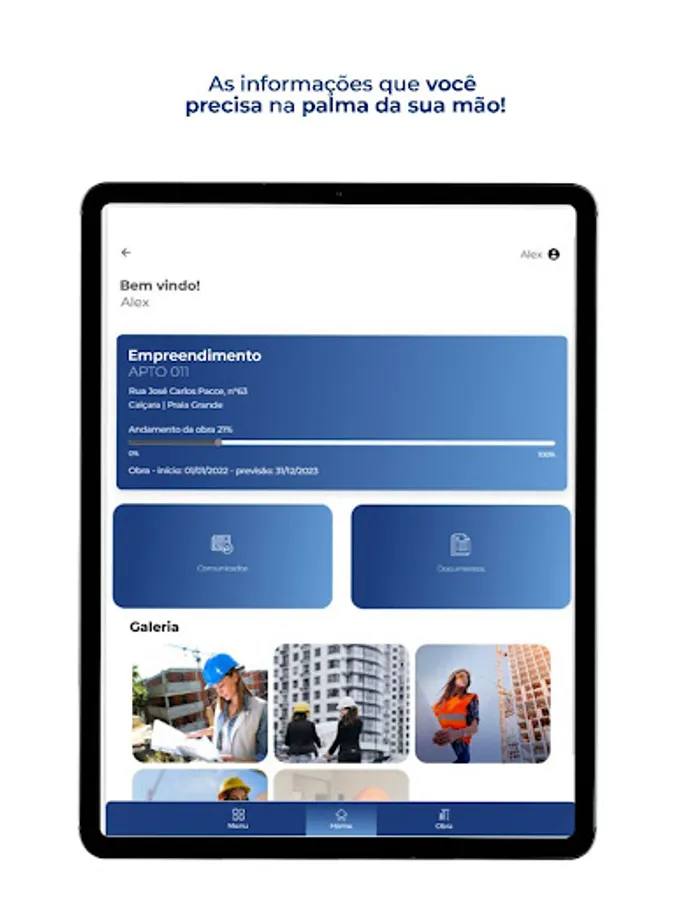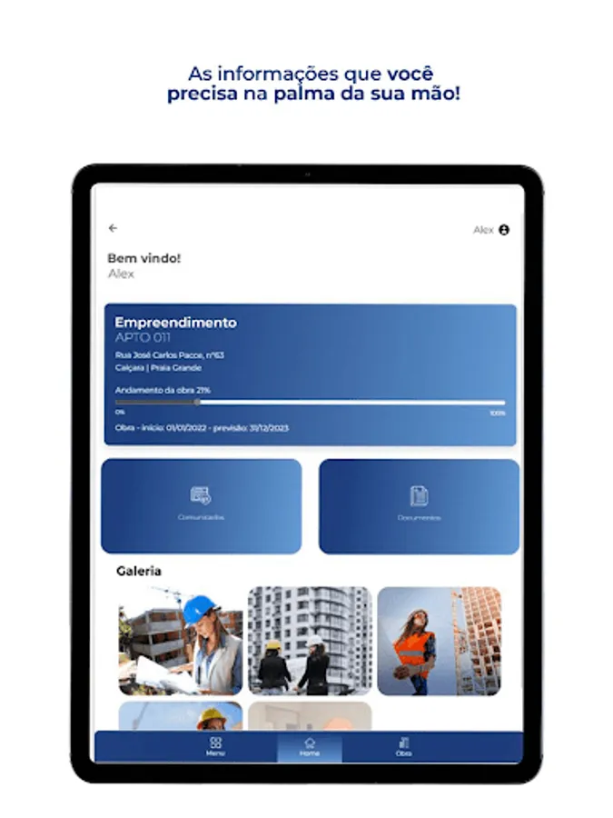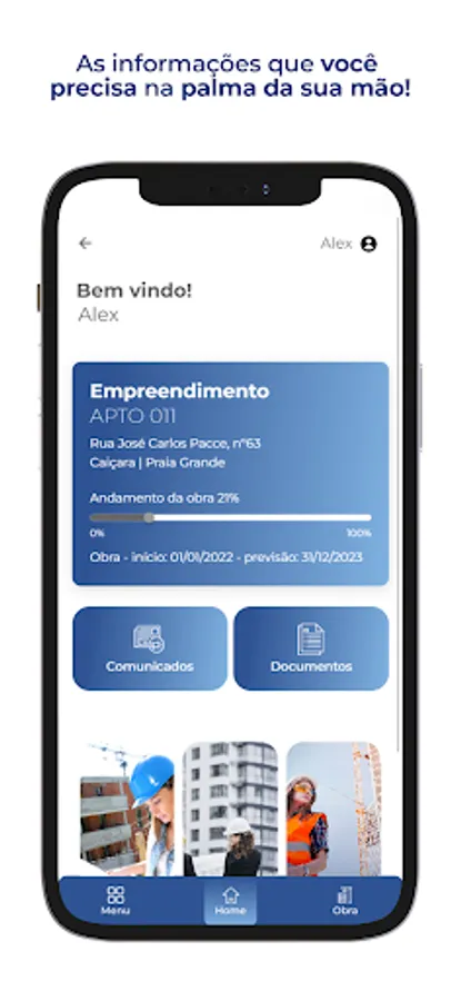 Schedule visits, follow the progress of the work, update your data and much more through the Construtora Avenida app.