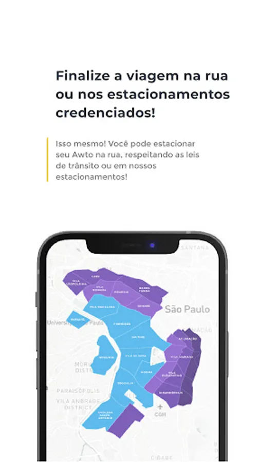 At Awto you can pick up a vehicle at destination A and end your trip at another destination different from the beginning! In addition, it is possible to return the vehicle on the street, in the blue area indicated in the app or in the authorized parking lots that are spread around the city of São Paulo (soon also in other Brazilian cities).