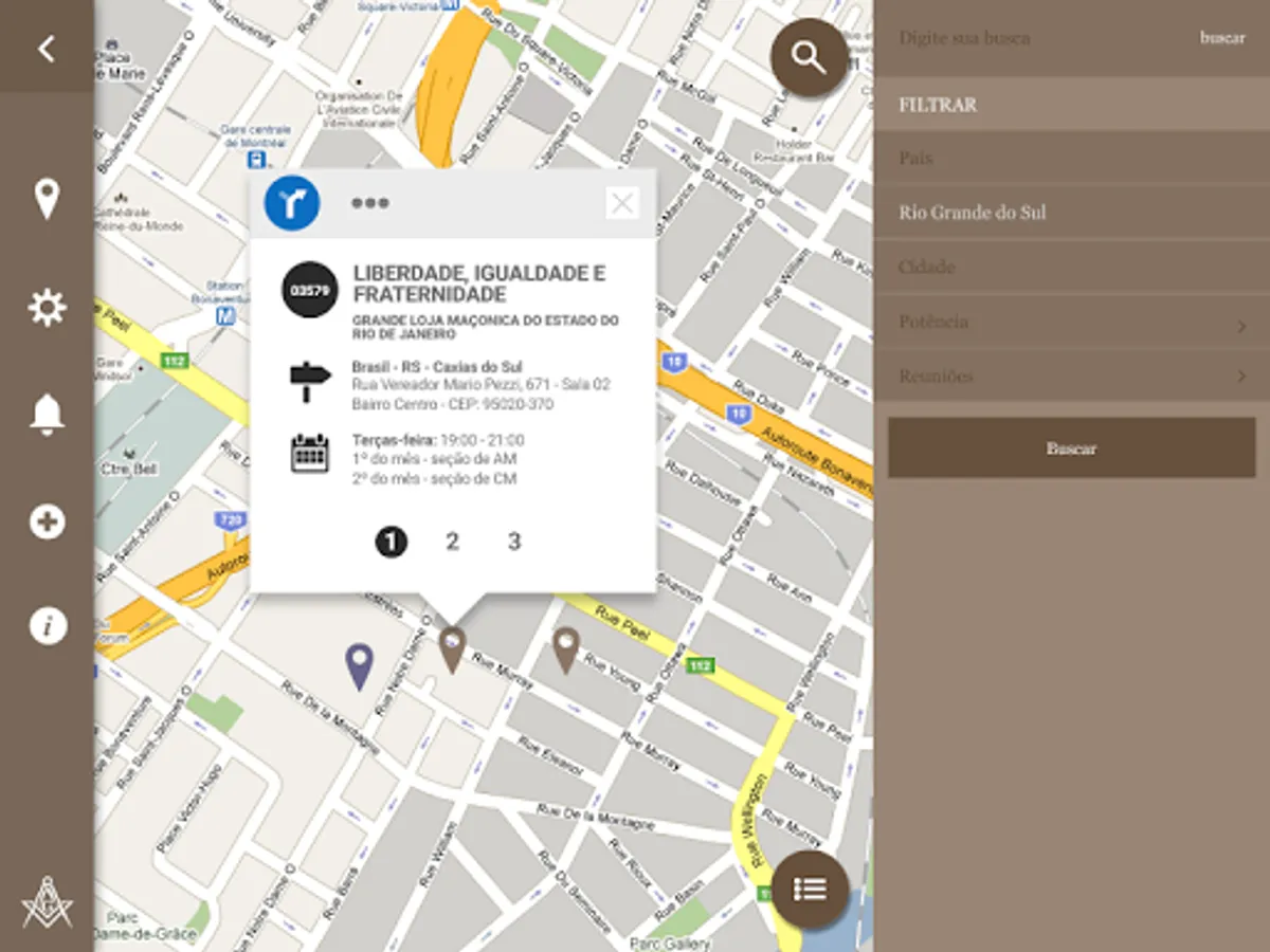 It contains information about Grand Logges, address, location, rite, day and time of sessions, among others.