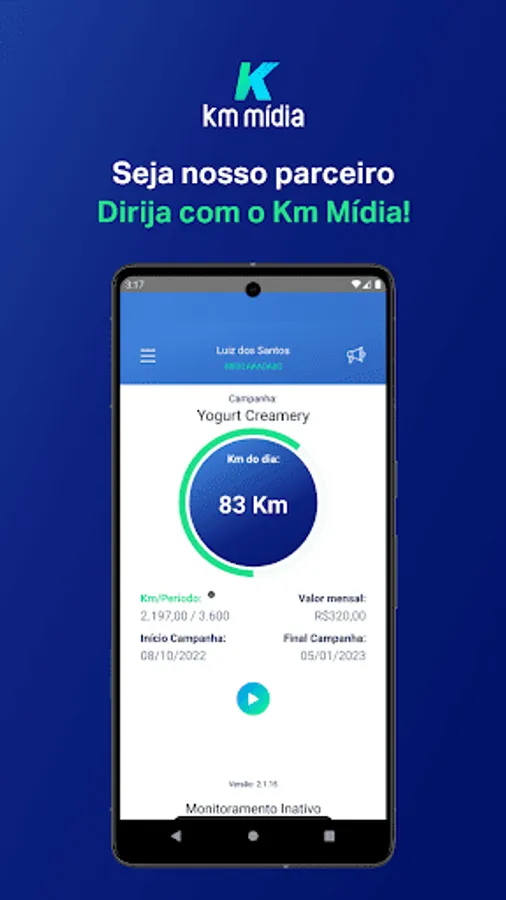 With a completely free app, self-employed, Uber, 99, taxi and similar drivers work tirelessly to earn 1% more in their income. But by registering with KM Mídia, we provide an increase in monthly income without paying or working extra.