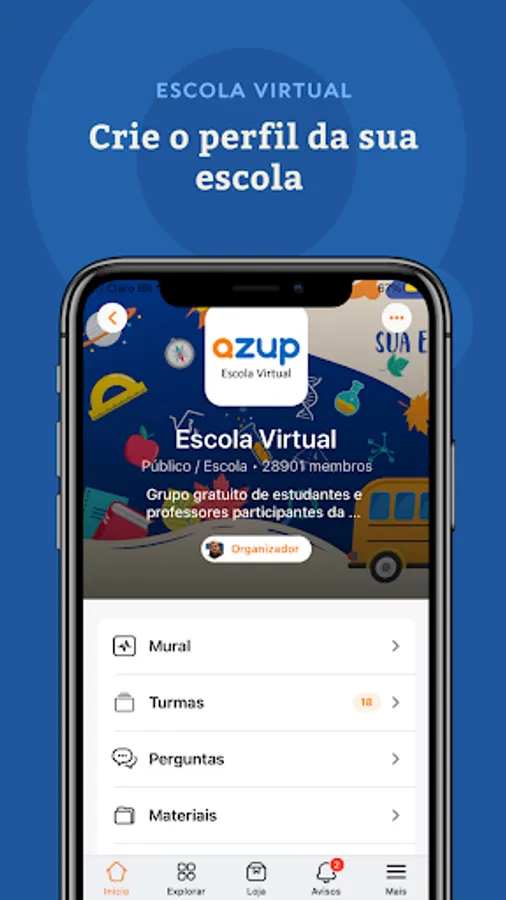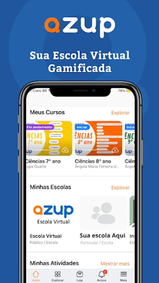 Azup is your virtual school gamified! Learn and teach all school content in elementary and high school through online courses organized by year and subject (according to BNCC) with video classes, PDF materials, online exercises with template, grade calculation and solution of questions. and question and answer forums among attendees.