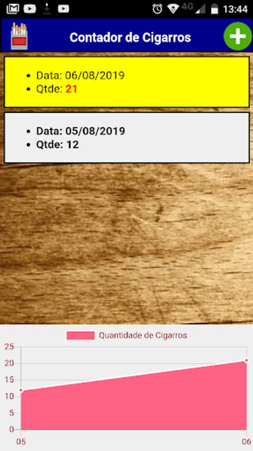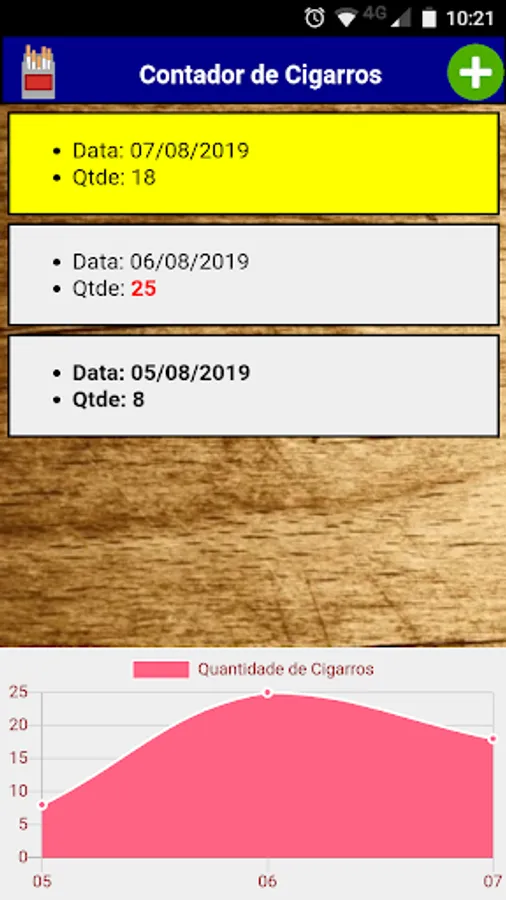 Allows you to count the amount of cigarettes smoked per day for those who want to quit. Generates charts for control.