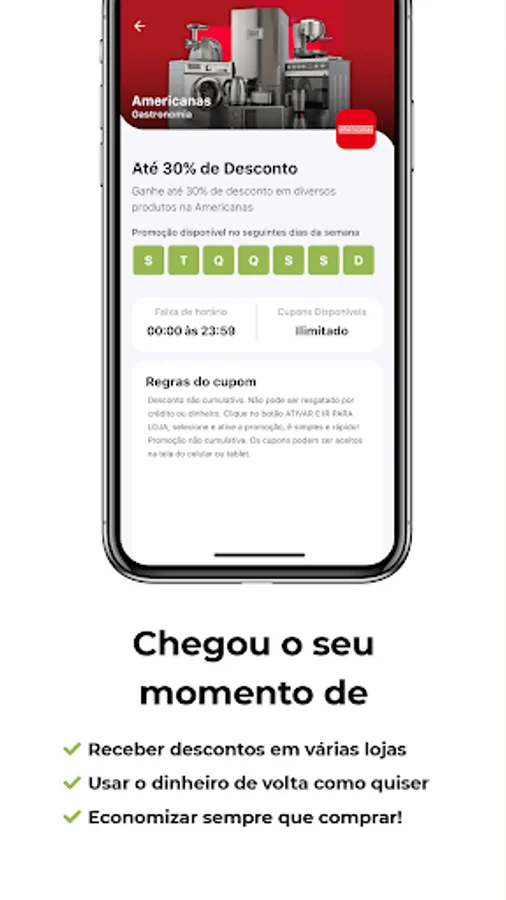 To combine discounts with cashback, just download and register in our Program app, search for the desired store, activate the cashback promotion and make the purchase normally on the store's website or app. As soon as the brand informs us about the purchase, the cashback amount will be visible on your statement.
