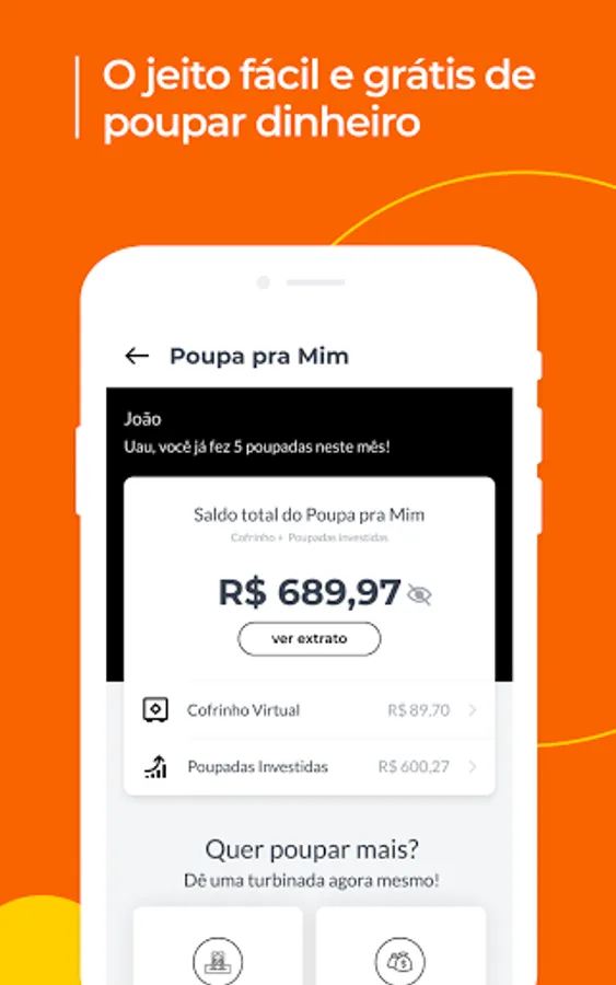 You no longer need to go to the bank to carry out operations such as transfers and deposits, you have it all online! Track your credit and debit card limit, balance and invoice, see your bank statement, make payments, pix, deposit by boleto and withdrawals.