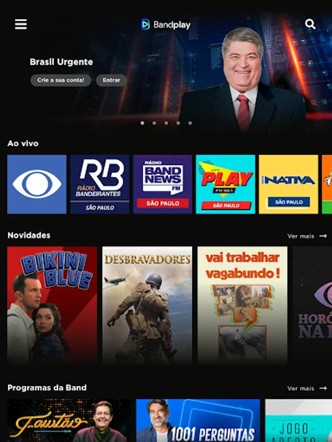 Bandplay brings all Band TV programming, Grupo Bandeirantes radios and podcasts to watch live or on demand.