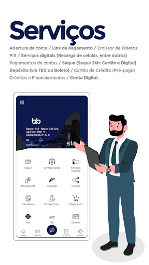 "Open your digital account at bsb Banco Digital. We are constantly evolving so that you have the best experience, bsb Banco Digital offers a complete and completely free checking account!