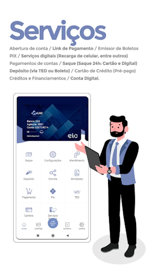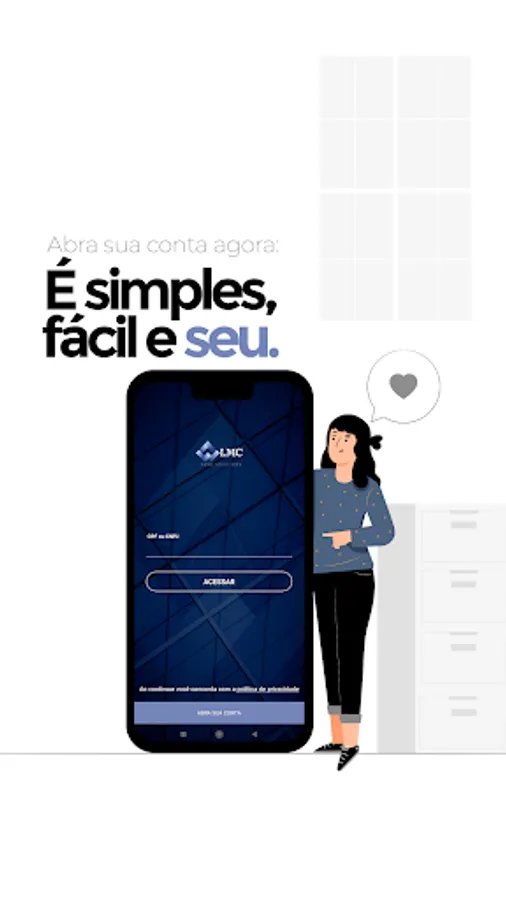 "Open your digital account at LMC Bank. We are constantly evolving so that you have the best experience, LMC Bank offers a complete and completely free checking account!