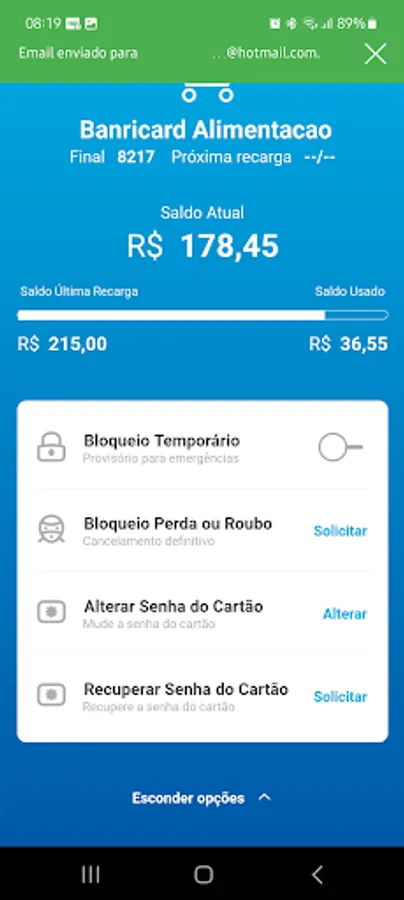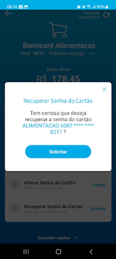 Now the Banricard App allows the recovery of the card password to the email registered by the company's manager.