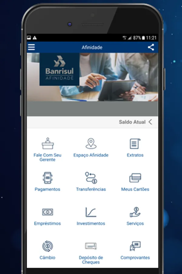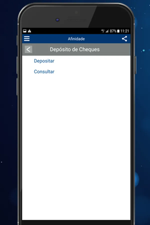 If you wish to make a check deposit, download the Banrisul and Banrisul Depósito de Cheques apps and start the service through the Banrisul app, accessing the Check Deposit option after accessing your account.