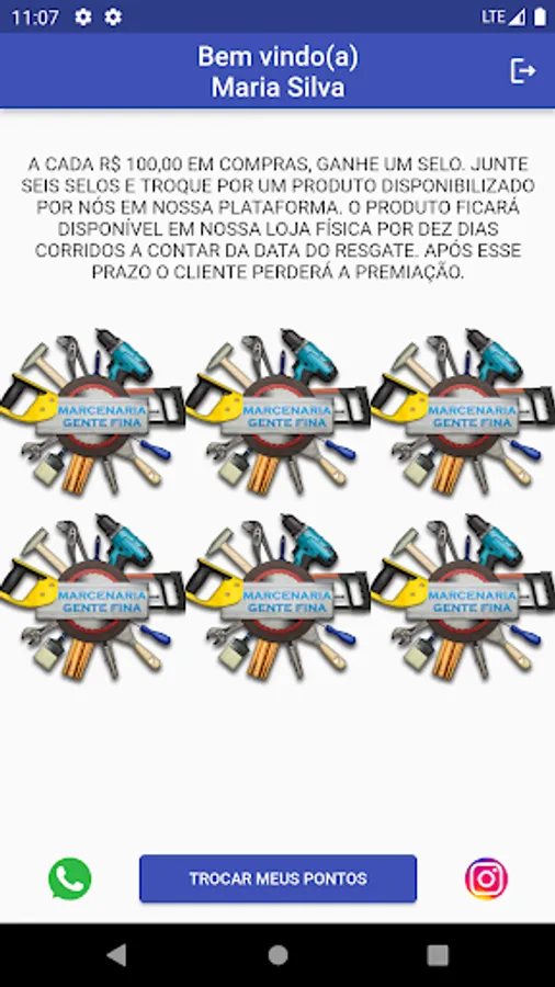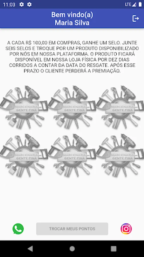 In the app, you can track the amount of stamps you have earned by shopping in our store and when you complete 6, you can exchange them for a gift in the prize area.