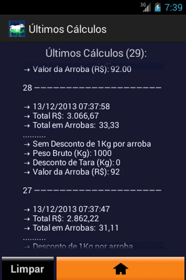 Please be informed the gross weight in kg (read the Rocks) and the market value of the at sign. By clicking the button BE, it returns the total in kilos and the total cash.