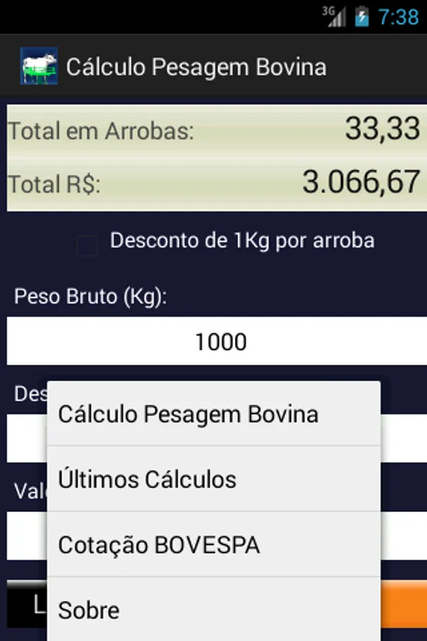 Optionally, you can calculate the tare off for cows or discount 1/2 kg or 1 kg per bushel.