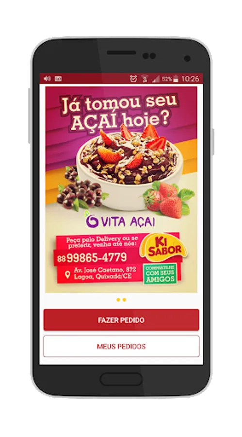 Meet our variety of pizzas, sandwiches, snacks, açaí, juices, smoothies and drinks. Has the option of receiving your order warm in your address, or withdraw directly on the counter. And yet take advantage of our promotions!