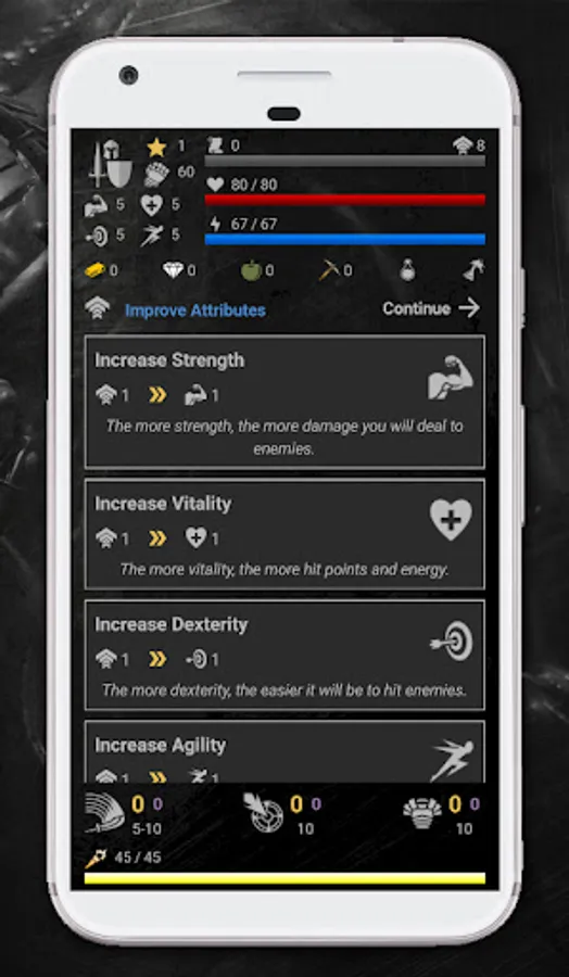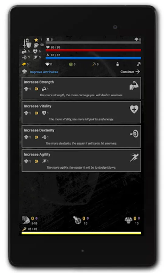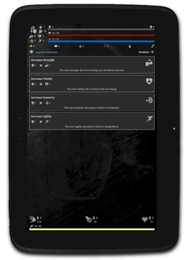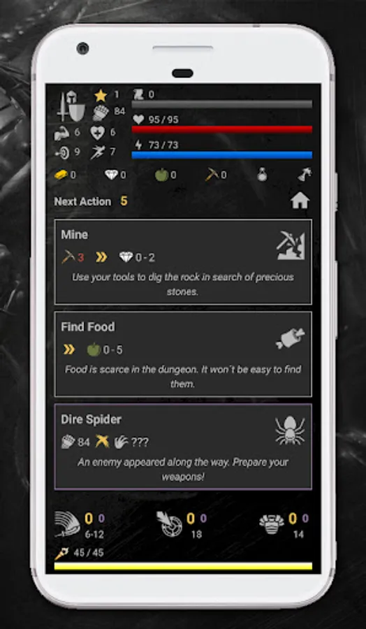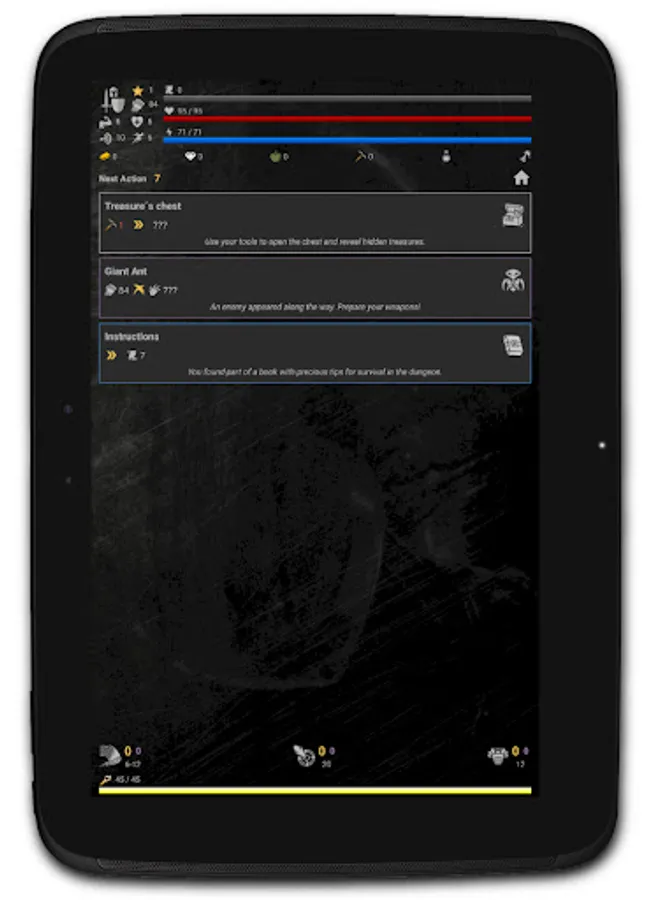 You awaken in a narrow hallway, dimly lit by flickering torches attached to the stone blocks that make up the walls. A rotten smell burns in your nostrils as your eyes adjust to the dimness. You are hungry, you are cold and completely devoid of memories. A rusty sword sheathed at the waist is your only companion. But there is no time for regrets. You notice tiny red eyes peering out of the darkness and a rush of adrenaline fills your blood. You take a deep breath, your heart speeds. The most challenging adventure is about to begin!