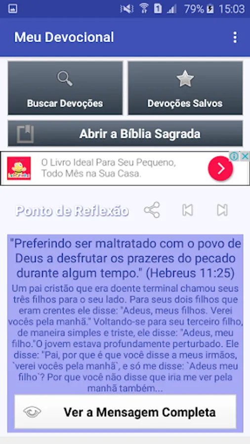 Beautiful messages and devotions that can be accessed fully without the need for connection to the internet, now you can worship the Lord at any time where you are you can still share messages with your friends on social networks and by email.