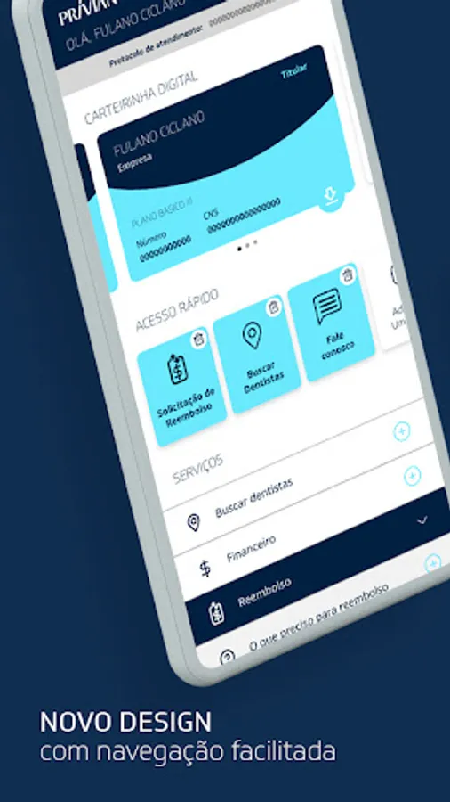 Quick and practical way you can make the monitoring of your refund, seek the nearest dentist on your location, contact your Personal Assistance, use your ID card on the digital version, see oral health promotion advice or also see the communication channels that are also at your disposal.