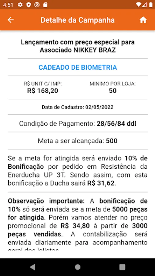 This APP has the functionality of interacting with purchase campaigns, for the group of shopkeepers in the construction materials sector, in addition to providing a news channel, supplier contacts and Nikkeybraz partners.